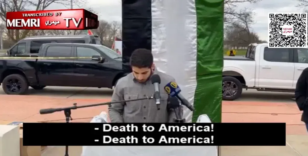 april 8, 2024: Anti-Israel activists were heard chanting “Death to America” and “Death to Israel” at a rally in a Michigan city recently dubbed the “jihad capital” of the US.