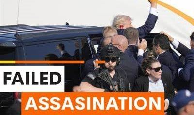 july 13, 2024: President Donald Trump was shot and survived a failed assassination attempt at a rally in Butler, Pennsylvania. trump was guarded off the stage safely by secret service officers. The shooter was shot dead on a roof approximately 120m from trump on stage at the rally in butler Pennsylvania by snipers. one attendee was shot dead and two severely injured.