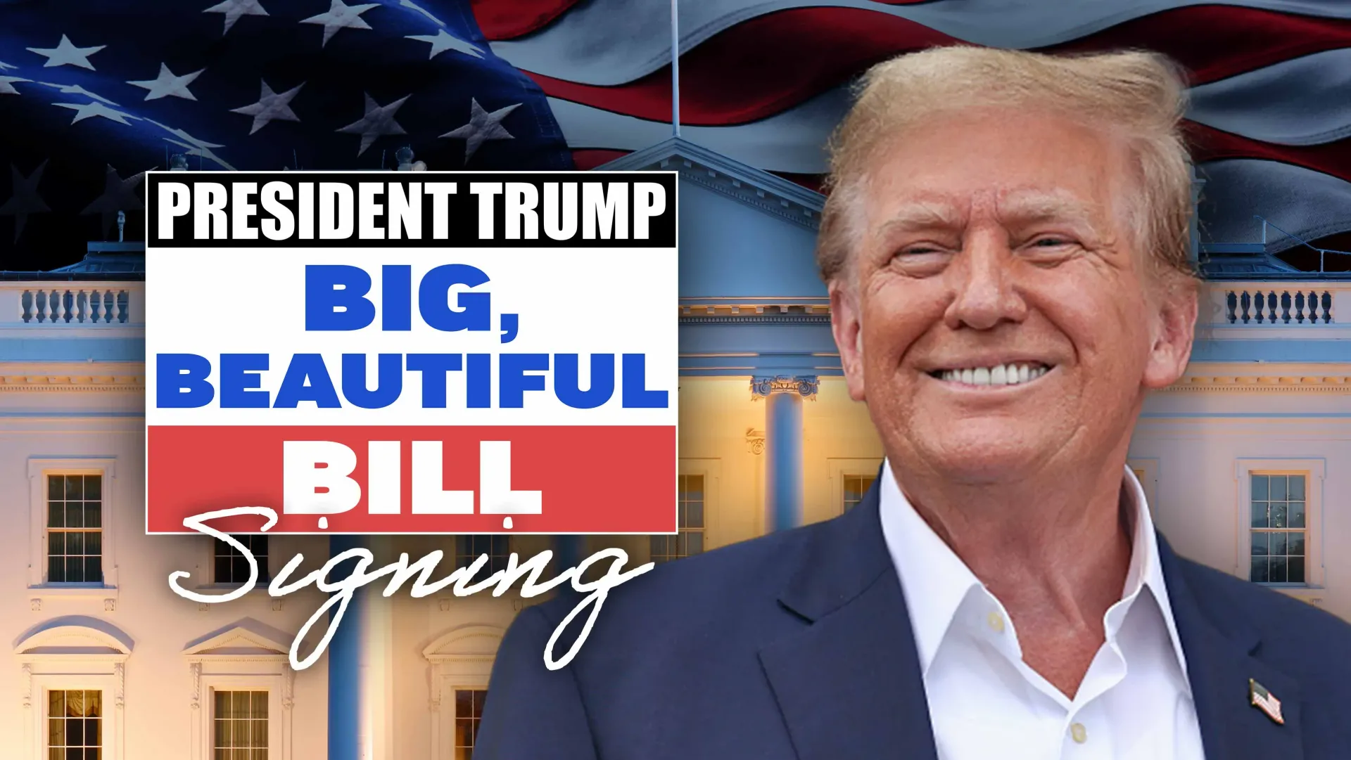 July 4, 2025 President Donald Trump signs the big beautiful bill on the White House Patio.